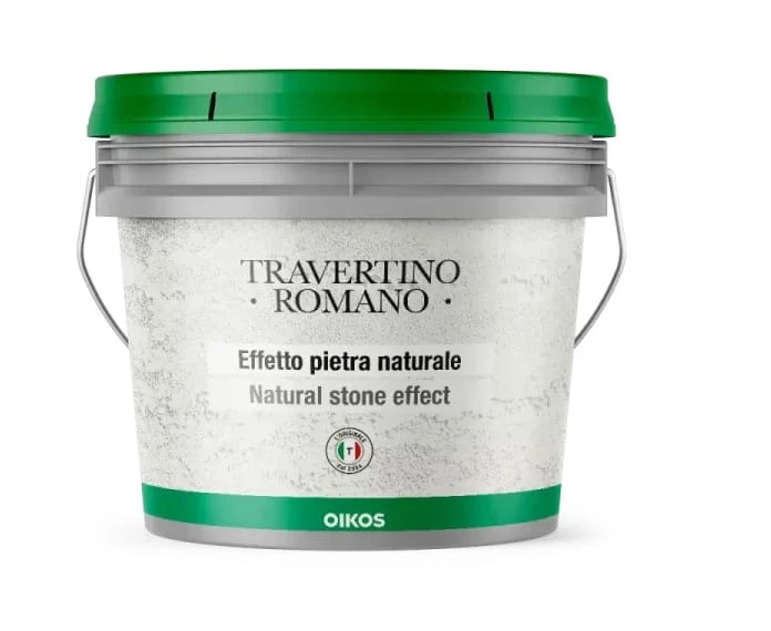 Travertino Romano to tynk dekoracyjny na bazie poddanego odpowiedniej obróbce sproszkowanego kamienia naturalnego, który po wymieszaniu ze spoiwem przybiera postać gęstej, kremowej masy. Dzięki zastosowaniu właściwej techniki aplikacji pozwala na uzyskanie efektu naśladującego strukturę naturalnego materiału, nie zmieniając jego właściwości.