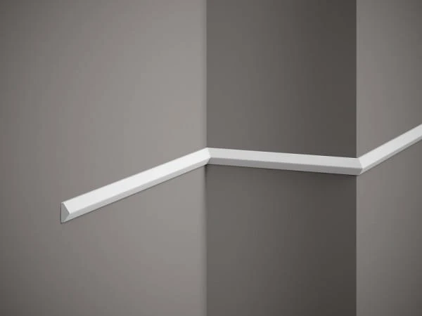 Listwa ścienna QL022 Mardom Decor to minimalistyczny profil dekoracyjny o charakterystycznym, geometrycznym kształcie, który doskonale sprawdza się w nowoczesnych i designerskich wnętrzach. Wyróżnia się prostą, a jednocześnie efektowną formą – przypominającą delikatną, trójkątną wypustkę, która tworzy na ścianie interesującą grę światła i cienia.