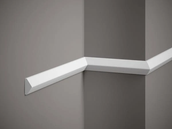 Listwa ścienna QL023 Mardom Decor to nowoczesny element sztukaterii o subtelnym, geometrycznym designie, który doskonale wpisuje się zarówno w minimalistyczne, jak i bardziej klasyczne aranżacje wnętrz. Jej charakterystyczny, trójkątny profil wprowadza na ścianie elegancką grę światła i cienia, nadając przestrzeni wyrazistości bez nadmiernej dekoracyjności.